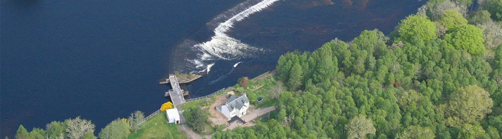 Constructed between 1825 and 1830 by Thomas Telford, Ness Weir sits at the mouth of Loch Dochfour and the River Ness. The weir raises the water level of Loch Dochfour by almost two metres and Loch Ness by 1.2m. It retains around 100,000,000m³ of water and thanks to this elegant engineering solution, vessels are able to transit through Dochgarroch lock, through Loch Dochfour, and into Loch Ness.