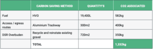 Significant Carbon savings can be demonstrated when compared with compatible alternate technologies. The tables below shows just some of the Carbon saving initiatives implemented throughout the duration of Souters Wood DSR works.