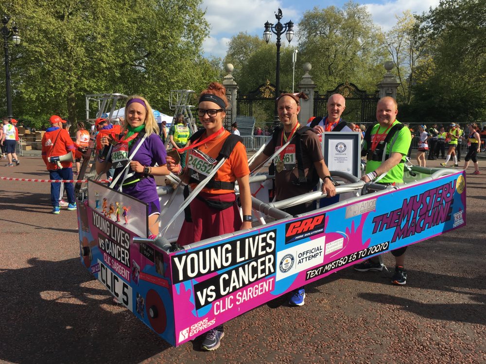 Congratulations to David Hepburn for achieving a “New World Record” at the London Marathon on Sunday 23rd April and enters the Guinness Book of Records for the fastest marathon in a five-person costume (Scooby Doo’s Mystery Machine) with a time of 6:17:26.