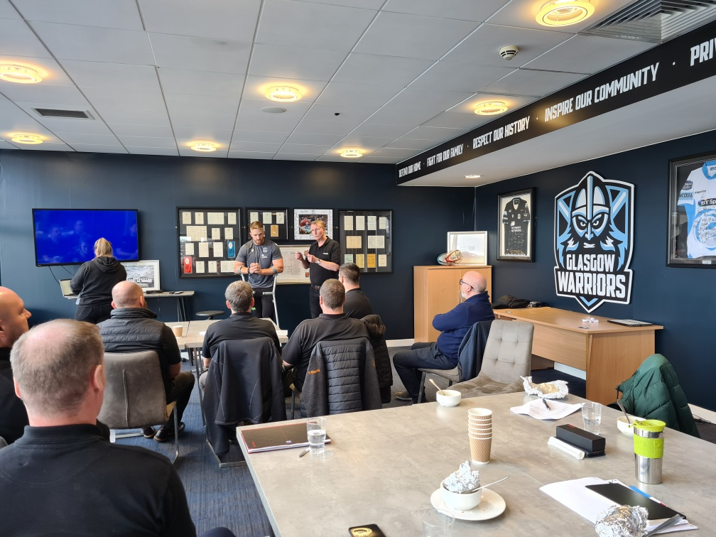 We were delighted to have Kyle Steyn from Glasgow Warriors in attendance as our guest speaker. Kyle talked about the values and culture within Glasgow Warriors before presenting each of the Project Managers with their certificates on the back of the completed Management & Leadership Training course which was delivered by Graeme Crombie.