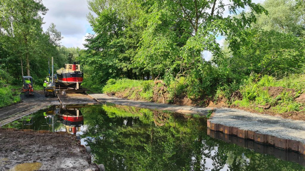 Recently, we had the opportunity to contribute to a meaningful project with the Forth & Clyde Canal Society, carrying out slipway upgrades and car park improvements at their canal access area in Kirkintilloch. The site is situated next to the historic Stables building – a former 19th-century coaching inn that once served horses and travellers along the canal – and holds significant heritage value. The area had fallen into disrepair and we were pleased to help restore it to a safer and more accessible condition.